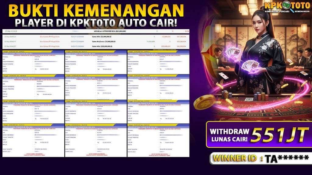 Bandar togel KPKTOTO merupakan bandar togel dan slot online yang membayar semua kemenangan member hingga lunas. Setiap pembayaran pada situs kami dilakukan dengan cara transfer ke rekening tujuan yang sudah di daftarkan pada situs togel online kami, Pembayaran hanya dapat di proses jika rekening yang di daftarkan telah valid dan dapat di transfer. Semua kemenangan member yang mendapatkan hadiah jackpot terbesar akan kami posting agar semua pemain dapat melihat bandar situs terpercaya KPKTOTO ini membayar semua kemenangan member hingga lunas. Setiap postingan yang kami posting akan kami lakukan sensor pada nomor rekening 4 digit dan nama rekening untuk menjaga privasi dan kerahasiaan member. Postingan Jackpot yang kami posting agar member atau pemain yang belum pernah bermain bisa melihat bandar togel Bukan Kaleng Kaleng Seperti KPKTOTO ini, Semua postingan jackpot yang kami posting dapat di lihat data keasliannya melalui nomor reff yang di tunjukan pada bank atau mbanking saat kita melakukan transfer.